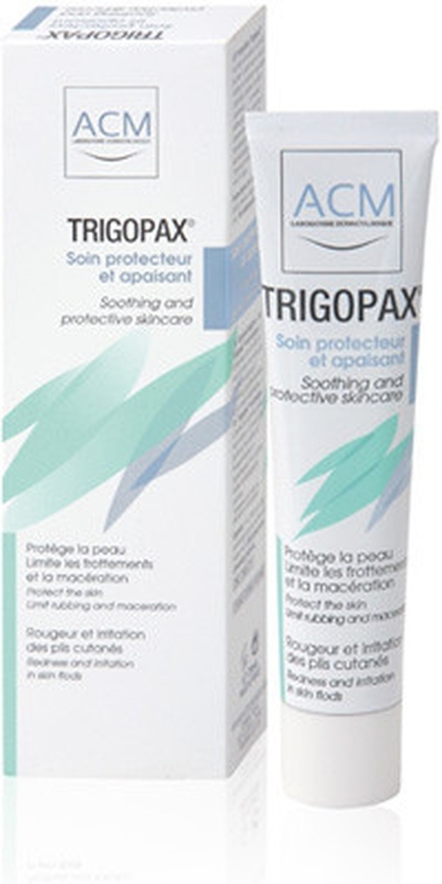 igopax Crema de ACM Laboratories ha sido concebido para proteger la piel, especialmente en caso de roce o de maceración repetida (actividad deportiva, ropa interior demasiado ceñida, etc.).Este tratamiento ha sido especialmente diseñado para proteger, calmar y reparar la piel en caso de rozamiento y / o maceración, causando irritaciones y enrojecimiento dentro de los pliegues cutáneos, especialmente en atletas, ancianos u obesos.Los ingredientes activos especÃficos limitan la maceración y la fricción mientras que promueven la reparación de la epidermis.La flora bacteriana y fúngica es controlada para limitar el riesgo de infección.Trigopax contiene Amihope, un polvo que permite lograr una lubricación cuatro veces mayor que el del talco.Muy bien tolerado, no irrita las mucosas.Se recomienda aplicar 1 ó 2 veces al dÃa sobre las zonas seleccionadas, una vez la piel limpia y se