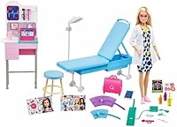 Sogna in grande con le bambole Barbie in carriera! Barbie con capelli castani non inclusa. Esplora un mondo di cura per gli altri e mantieni i pazienti felici e sani con il set da gioco medico di Barbie! Indossa un adorabile abito a pois, un camice bianco da medico e con uno stetoscopio, la bambola medica dottoressa Barbie (30,40 cm/12 pollici) è pronta a prendersi cura dei suoi pazienti La bambola medica Barbie può esaminare i suoi pazienti sul tavolo degli esami con lo stetoscopio, l'otoscopio, il martello, il misuratore di pressione, il termometro, guardare le radiografie e altro ancora! Porta anche gli strumenti da portare con la borsa del dottore! La bambola medica Barbie può anche bendare il suo paziente con il tutore per il braccio e il tutore per la gamba. C'è anche un foglio adesivo per decorare il cast del paziente! Un ottimo regalo per bambini dai 3 anni in su, soprattutto quelli interessati al campo medico e ad aiutare gli altri!