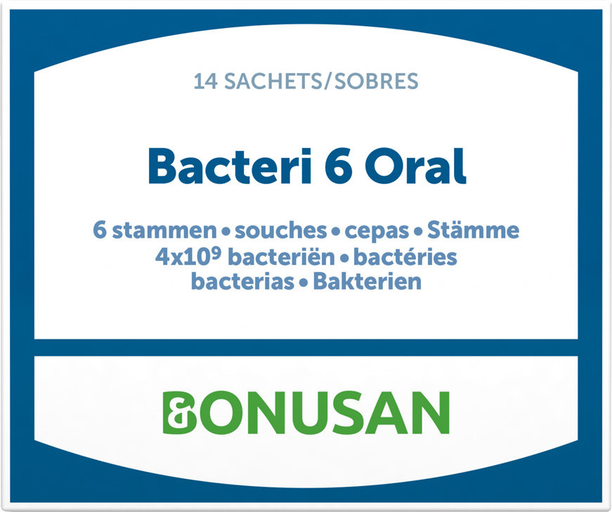 Qué es BONUSAN BACTERI 6 ORAL 14 SOBRES?BONUSAN BACTERI 6 ORAL 14 SOBRES es un suplemento probiótico especialmente formulado para mejorar la salud bucal y dental. Este producto contiene una combinación exclusiva de 6 cepas de bacterias beneficiosas que promueven el equilibrio de la microbiota oral, ayudando a prevenir problemas comunes como caries, mal aliento y enfermedades de las encías.¿Cuáles son los beneficios de BONUSAN BACTERI 6 ORAL 14 SOBRES? Mejora la salud bucal: Ayuda a mantener un equilibrio saludable de bacterias en la boca. Prevención de caries: Reduce la formación de placa dental y previene las caries. Elimina el mal aliento: Combate las bacterias que causan el mal aliento, proporcionando un aliento fresco. Protección de las encías: Ayuda a prevenir y reducir la inflamación de las encías. Fortalece el sistema inmunológico: Refuerza las defensas naturales de la cavidad bucal.FormatoBONUSAN BACTERI 6 ORAL 14 SOBRES está disponible en un formato práctico de sobres, lo que facilita su dosificación y transporte. Cada caja contiene 14 sobres, ideal para un suministro de dos semanas.Sabores disponiblesBONUSAN BACTERI 6 ORAL 14 SOBRES está disponible en un sabor neutro, lo que permite su fácil combinación con cualquier bebida sin alterar su sabor natural.¿Cómo tomar BONUSAN BACTERI 6 ORAL 14 SOBRES?Si no hay consejo diferente, se recomienda una vez al día después de una comida, mezcle el contenido de un sobre en un vaso de agua y revuelva brevemente. Enjuague la boca con la mezcla durante unos dos minutos y trague. No sobrepasar la dosis diaria recomendada.IngredientesLos ingredientes de BONUSAN BACTERI 6 ORAL 14 SOBRES incluyen por sobre: Mezcla de cepas bacterianas: Lb. casei BGP93, Lb. fermentum PBS073, Lb. paracasei 101/37, Lb. plantarum 14D, Lb. rhamnosus LR1, Lb. salivarius SP2: 4 x 10⁹ UFCComprar BONUSAN BACTERI 6 ORAL 14 SOBRESPuedes adquirir BONUSAN BACTERI 6 ORAL 14 SOBRES en tiendas de productos naturales, farmacias especializadas y a través de diversas plataformas en línea. Asegúrate de comprarlo en lugares confiables para garantizar la autenticidad y calidad del producto.BONUSAN BACTERI 6 ORAL 14 SOBRES es una excelente opción para quienes buscan mejorar su salud bucal de manera natural y efectiva. Con su combinación única de cepas probióticas, este suplemento ofrece una solución completa para mantener tu boca y dientes en óptimas condicione