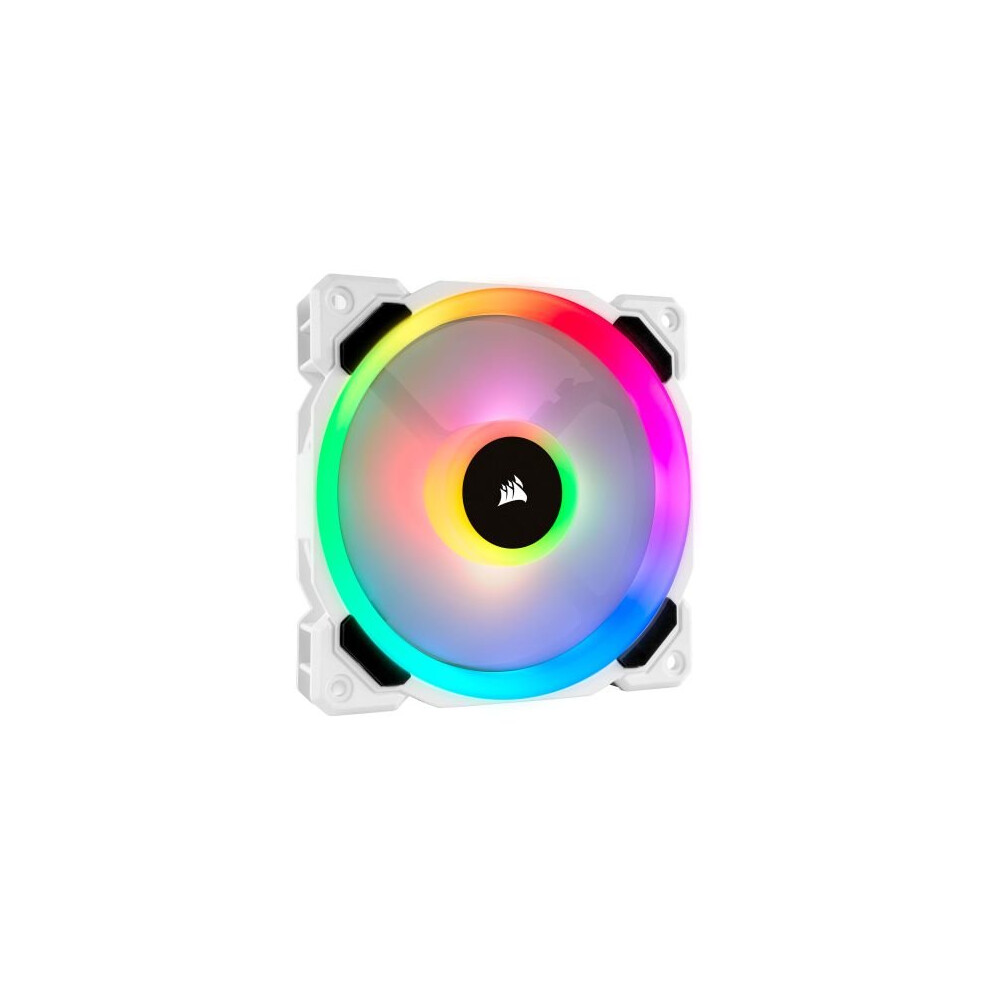 El ventilador CORSAIR LL120 RGB LED 120mm PWM White Smart Fan cuenta con 16 LEDs RGB direccionables individualmente repartidos en dos lazos de luz...