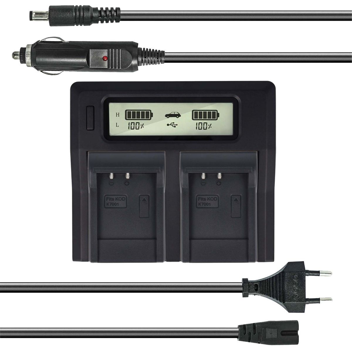 Dual-Akku-Schnellladegerät für Kodak Klic-7001 - USB-Anschluss / LCD / Kfz-Kabel