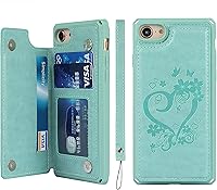iCoverCase - Custodia a portafoglio per iPhone SE (2°) 2020/7/8, con slot per carte di credito, con supporto e blocco RFID, in pelle goffrata, antiurto, con cinturino da polso, per donne e uomini (menta cuore)