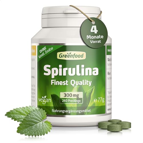 OPTIMALES PREIS-LEISTUNGSVERHÄLTNIS: Genießen Sie hochwertige Spirulina Tabletten zu einem Preis, der begeistert. Mit 300 mg reiner Spirulina Alge pro Pressling erhalten Sie ein ausgezeichnetes Angebot für Ihre tägliche Dosis natürlicher Unterstützung mit Greenfood.