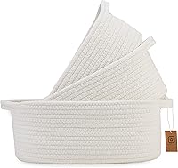 3 cestas para 3 veces el poder organizador: la vida es desordenada... pero tu casa no tiene que serlo. Con tres hermosas cestas de cuerda para organizar, derrotarás habitaciones desordenadas como una verdadera supermamá Utiliza la cesta más grande para pañales de bebé y artículos esenciales de mesa para cambiar pañales o almacenamiento de juguetes para niños, crea la cesta de juguetes para gatos o perros más linda con el recipiente de tamaño mediano y guarda artículos cosméticos diarios en el más pequeño. 3 tamaños: L (12.5 x 9 x 5 pulgadas), M (11.8 x 8.5 x 4.7 pulgadas), S (10.5 x 7.7 x 4.3 pulgadas)