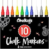 Come off Easy - The chalkboard pen will work on almost any surface! Will erase off non-porous surfaces; such as blackboard (wet erase), glass & mirrors (dry erase) and Permanent on porous surfaces The Ultimate Freedom of Expression - Chalkola’s chalk paint markers are great to decorate wedding signs, shop storefront, milestone boards, menus, LED boards, contact paper, car mirrors. Made for Everyone - Whether you're a Teacher, Mom, Student, Artist, Kid, Business, Office or Restaurant Owner our white liquid chalk markers make creating beautiful messages effortless. Mess-Free: These liquid chalk pens are washable. Simply wipe over your surface to clean it! Long Lasting: While other pens crack under heavy use, our richly pigmented chalk marker pen set stays fray free.