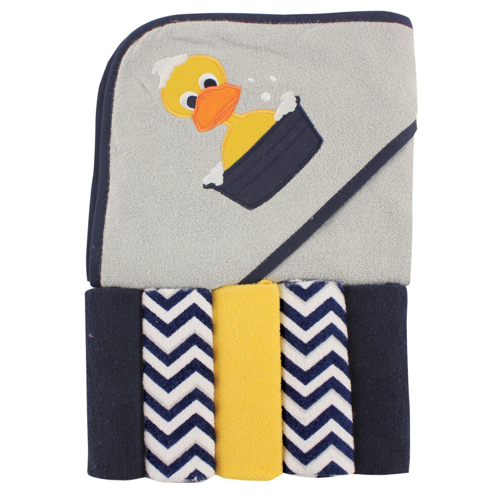 Il set include un asciugamano con cappuccio e cinque panni Realizzato con 75% cotone, 25% poliester…