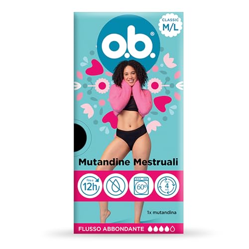 O.B. Mutande Mestruali Classic M/L, Mutandine Assorbenti Per Flusso Medio E Abbondante Indossabili Fino A 12 Ore, Mutande Ciclo Mestruale Donna Lavabili E Riutilizzabili, 1 Unità - Esclusiva Amazon