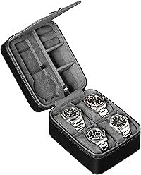 Massima protezione dell'orologio: Custodia da viaggio stente agli urti, con esterno in pelle PU, progettata per essere portatile e per mantenere il tuo orologio da polso o smartwatch al sicuro durante i viaggi o quando lo si ripone. Originariamente progettato da un designer di orologi per conservare i propri orologi personali in modo sicuro durante i viaggi. Morbida imbottitura interna: Il morbido materiale interno protegge il vostro orologio da graffi e ammaccature, rendendolo sicuro per conservare orologi di lusso. Le robuste cerniere in plastica assicurano che i vostri orologi non vengano graffiati accidentalmente. anelli, bottoni per maniglie, cinghie, altri oggetti Il coperchio è dotato di un'ulteriore fessura per orologi o cinghie, insieme a una fessura nascosta per attrezzi a molla sotto e 3 piccoli spazi aggiuntivi. Una piccola fessura ha dei cuscini che sono perfetti per riporre anelli o gemelli. Le altre fessure sono diviso da un divisorio semi-mobile (per estrarre facilmente le cose) Si adatta a qualsiasi stile: Questa scatola per orologi a 5 scomparti si adatta a qualsiasi orologio da uomo o donna, smartwatch, fitness tracker o orologio di lusso con quadrante inferiore a 55 mm, si adatta a tutte le marche e stili. La circonferenza del cuscino è di 18,4 cm e può essere compressa a 16,5 cm. Se l'orologio è inferiore a 16,5 cm, è possibile lasciare la fibbia aperta per regolarlo. Accessorio da viaggio perfetto: leggero e perfetto per le vacanze, i viaggi di lavoro o semplicemente per conservare i vostri preziosi orologi e accessori. Conserva anelli, bracciali, cinturini aggiuntivi o altri accessori in uno scomparto superiore separato e conserva 4 orologi al sicuro. Dimensioni: 17,145 x 13,3 x 10,8 cm