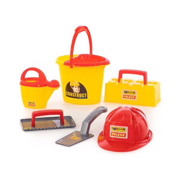 Wader Construc. Incluye un cubo, una regadera, una paleta de albañil, un casco, un molde para ladri…