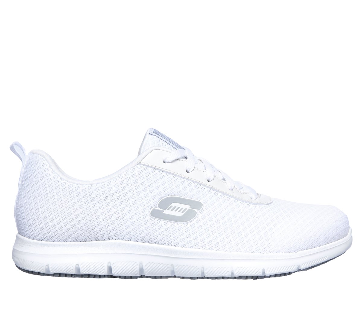 Le style sport s’allie au confort et à la stabilité dans la Skechers Work™ Relaxed Fit™ : Ghenter - Bronaugh SR. Cette conception antidérapante pour le travail comprend une tige en maille et en grille synthétique avec des lacets à l’avant et une semelle intérieure coussinée Skechers Air-Cooled Memory Foam™. | Skechers Work Slip-Resistant Relaxed Fit: Ghenter - Bronaugh Chaussures Moyen Width en Blanc, Pointure 37.5