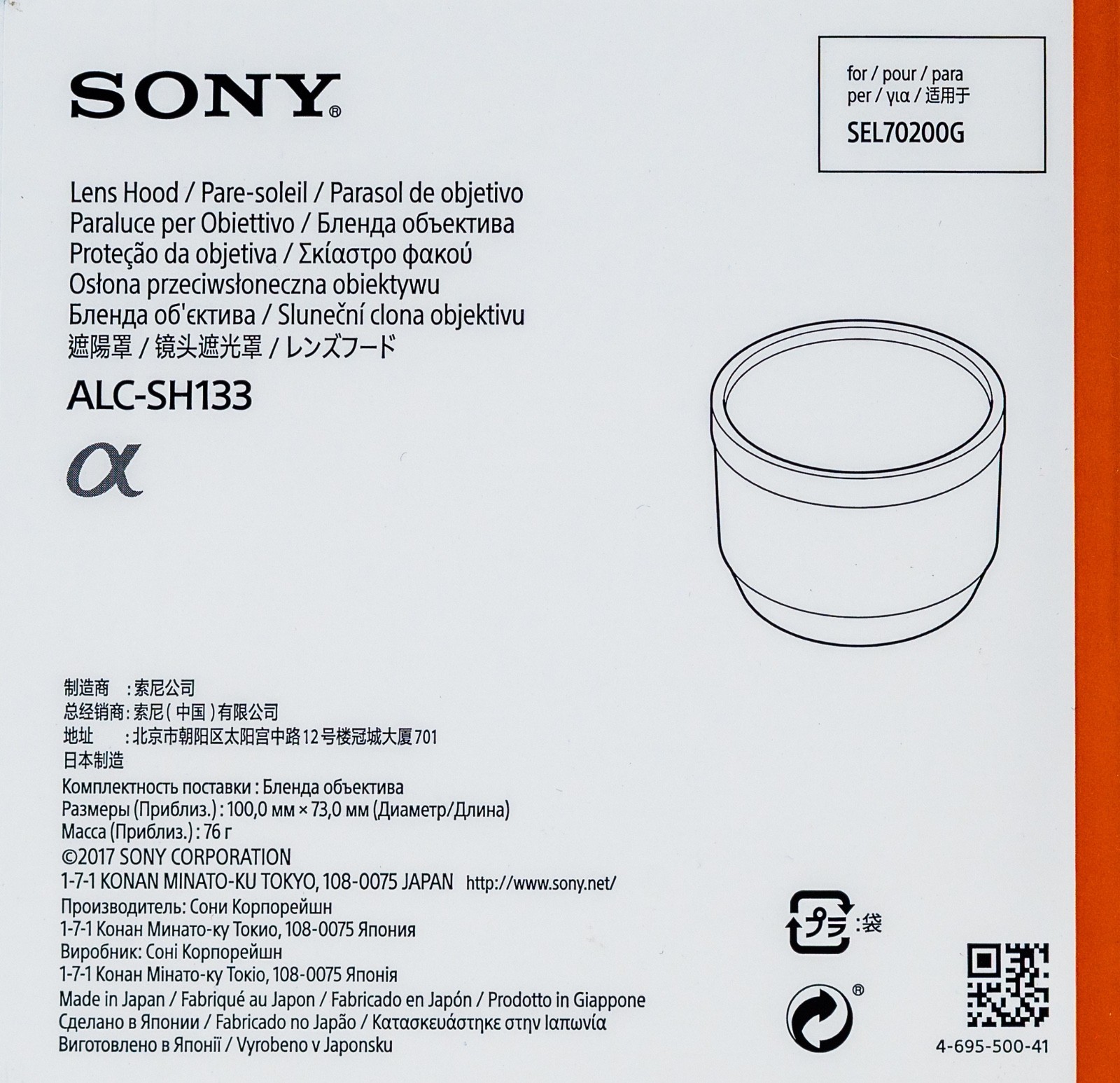 Sony ALC-SH133 Streulichtblende Gegenlichtblende FE 70-200mm f4 G (SEL-70200G)