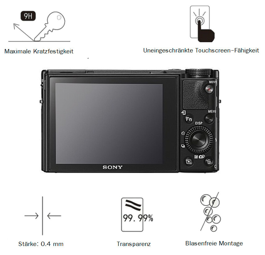Sony RX100 Mark V 0,4 mm Adhäsion Displayschutzglas Schutzfolie LC7678