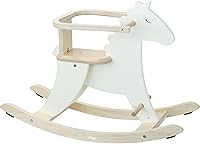 Caballo balancín de madera blanco con respaldo. El respaldo se puede quitar a voluntad. Los juguete…