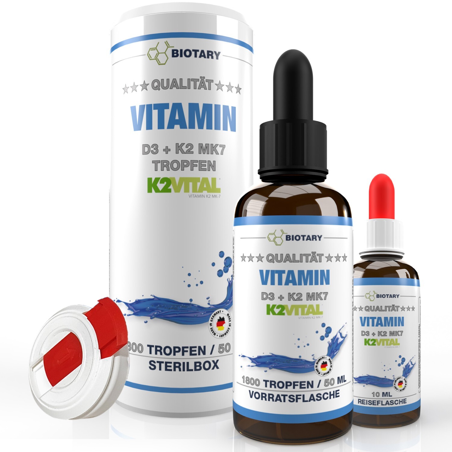VITAMIN D3 K2, 50ml = 1800 Tropfen, 59 Monatsvorrat, INCLUSIVE STERILBOX