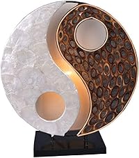 Lámpara de mesa Ying Yang de tela, bambú y capiz El conocido motivo del Lejano Oriente de fuerzas o…