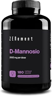 2000 MG DI D-MANNOSIO, ALTO DOSAGGIO: Il nostro integratore di D-Mannosio è formulato con 2000 mg di D-Mannosio per dose giornaliera (3 capsule), perciò ogni capsula contiene 667 mg di D-Mannosio puro. Il D-Mannosio è un monosaccaride estratto da fonti naturali. L'ingrediente attivo della nostra formula senza glutine è estratto dal mais. 180 CAPSULE, 2 MESI DI FORNITURA: Ogni flacone di D-Mannosio contiene 180 capsule vegane facili da deglutire, fornendoti una scorta per 60 giorni, basata sulla dose giornaliera raccomandata di 3 capsule. PER IL TUO BENESSERE: Il consumo di D-Mannosio in dosi elevate come 2 g in modo esogeno favorisce un eccesso di D-Mannosio nelle vie urinarie, dove esercita il suo effetto. L'alleato perfetto per la donna! QUALITÀ E SODDISFAZIONE: I nostri integratori, formulati a Barcellona, sono prodotti con ingredienti della massima qualità e sottoposti a rigorosi controlli per soddisfare i più alti standard di sicurezza ed efficacia, offrendo un'opzione affidabile e salutare. Inoltre, mettiamo a disposizione un'assistenza personalizzata per rispondere a qualsiasi domanda e aiutarti a scegliere l'integratore più adatto alle tue esigenze. ZENEMENT,INSPIRING WELLNESS: Fondata nel 2017 a Barcellona, Zenement nasce con l'obiettivo di offrire integratori alimentari formulati con rigore e supportati dalla scienza. Ispirato alla filosofia "Zen", il nome fonde "Zen" e "Supplement", riflettendo un impegno per l'equilibrio e l'innovazione. In qualità di membro del Barcelona Health Hub, presso il Recinto Modernista de Sant Pau, promuove l'eccellenza e lo sviluppo nel settore della salute.